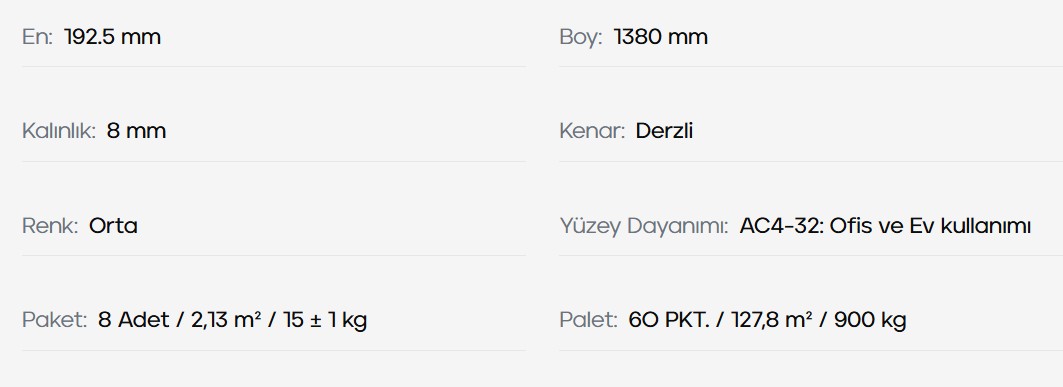 Çamsan Modern Long Seri Derzli 8 MM 32. Sınıf 2.13 M2 Aydos Meşe – 724