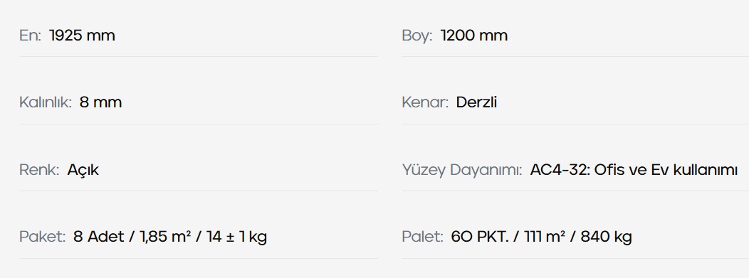 Çamsan Modern Seri Derzli 8 MM 32. Sınıf 1.85 M2 Solid Meşe – 717